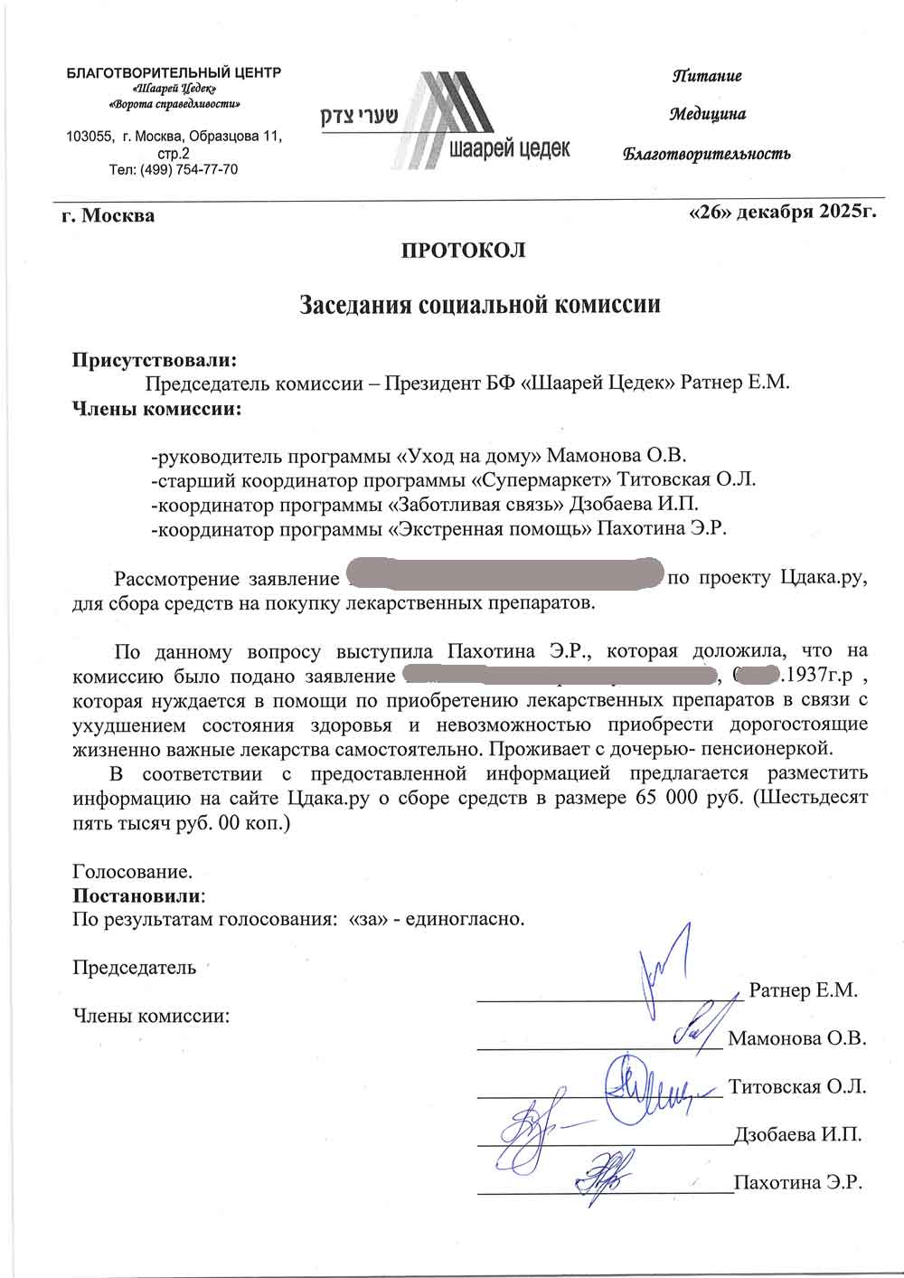 Комиссия благотворительного центра приняла решение о сборе средств через портал www.tzdaka.ru для помощи подопечной.
